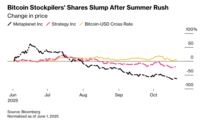 即便對於日本的加密貨幣囤積者,也出現了摩擦的跡象。全球最大指數提供者之一的MSCI 公司,最近在針對Metaplanet 9 月14 億美元國際股權發行的調查後,提議將大型數位資產財庫公司( DAT )排除在其全球指數之外。 Metaplanet 於今年2 月加入MSCI 日本小型股指數,並表示將以大部分募資購買比特幣,此後又額外購入10,687 枚代幣。 Metaplanet 未回應置評請求。