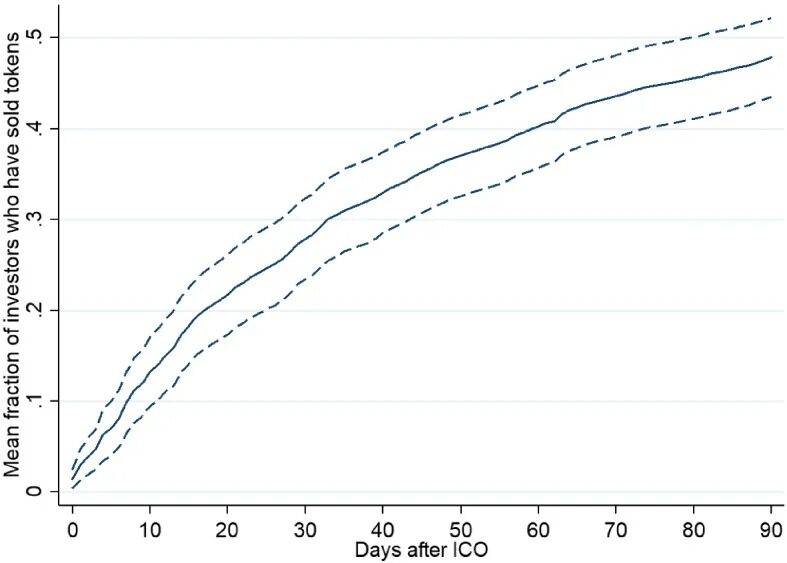 2017 年至2019 年間,ICO 投資大多採用先到先得的模式,投資人蜂擁而至,試圖以較低的估值入場,通常是為了在專案啟動初期快速獲利。對300 多個ICO 專案的研究數據顯示,30% 的投資者在專案啟動後的第一個月就退出了。