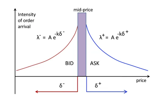 該模型的核心思想是,當做市商的庫存(q) 偏離其目標(通常為零)時,模型會系統性地調整報價中軸,以激勵市場成交能使其庫存回歸均衡的訂單。例如,當持有多頭庫存(q>0) 時,模型計算出的r(s,q,t)將低於市場中間價s,這意味著做市商會將其買賣報價整體下移,使得賣單更具吸引力,買單更不具吸引力,從而增加平掉多頭庫存的機率。
