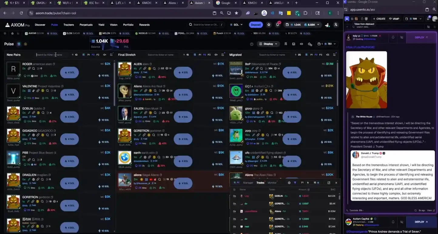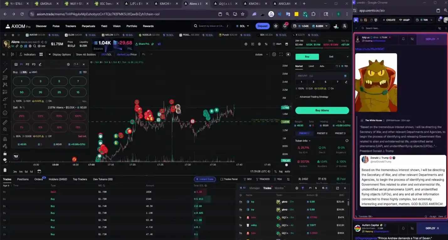 對於一個完完全全的新手,你還需要學會使用交易、推文監控工具,熟悉這場遊戲裡導致暴漲的文化和邏輯...