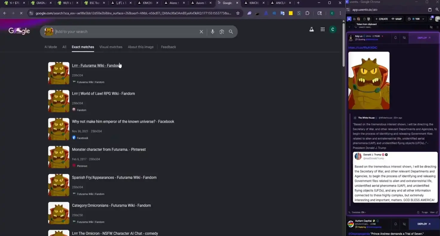toly 想表達什麼?不重要。clukz 在影片中自言自語了一句「這是啥?」,然後立馬用 Google 搜尋了這張圖片,發現 toly 所發送圖片對應的形象叫「Lrrr」。