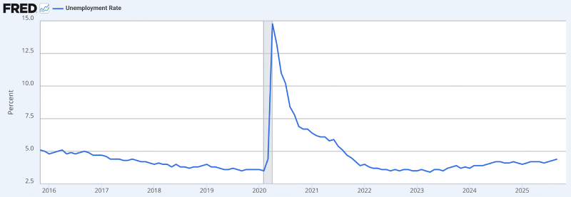 與通膨的緩慢退坡相比,勞動市場在2025年下半年釋放了更為明確的轉弱訊號。失業率已由年初的低位平穩攀升至4.6%,觸及2021年以來的最高閾值,標誌著後疫情時代勞動力嚴重供不應求的緊張狀態已實質性緩解。儘管非農業資料維持正向成長,但內部架構已嚴重分化,對利率敏感的製造業與金融業招募動能幾乎停滯。就業端的防禦性壓力正取代抗通膨需求,成為驅動聯準會在年底開啟階梯式降息的決定性邊際變數。