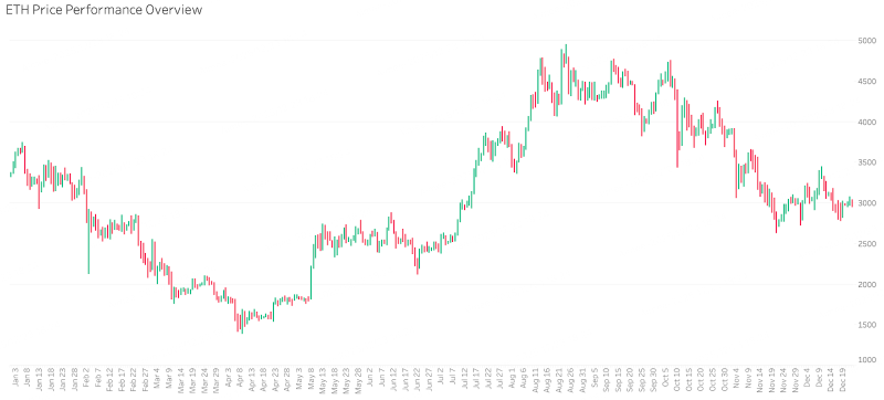 相較於比特幣,2025年的以太幣的價格走勢展現出更高的波動性。全年行情可分為三個階段:深度回調、強勁復甦與高位回落。年初,受到加密市場集體下跌的影響一度從24年高點4,040美元下跌至25年1,447美元最低點,下跌幅度一度超過65%。進入第二季度,隨著市場對聯準會降息的預期升溫資金開始回流。同時,Bitmine和SharpLink為首的以太坊DATs公司開始大量儲備ETH。雙重利好的驅動下促使以太坊成為25年中上漲的主力軍。其價格自四月低點以來一路上漲至相對高點約4950,上漲幅度高達242%。然而,隨著下半年宏觀不確定性加劇導致的市場深度回調,以太坊價格出現了快速的下跌。截止12月已從8月高點下跌至2828,跌幅超過43%。