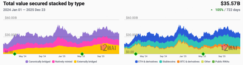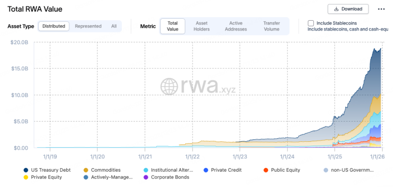 2025年,現實世界資產(RWA)賽道完成了從敘事到規模化落地的關鍵一躍,成為Web3領域確定性最高的成長引擎。數據顯示,其市場總價值實現了跨越式成長,標誌著產業已徹底脫離概念驗證階段,進入由機構化資本和清晰監管共同驅動的爆發期。這一爆發本質上源於RWA獨特的定位:在全球成長敘事中,它成為傳統資本(Old Money)與加密資本(New Money)罕見的價值共識交匯點,兩者在明確的監管試點和收益需求下形成合力,推動了市場的快速擴張。