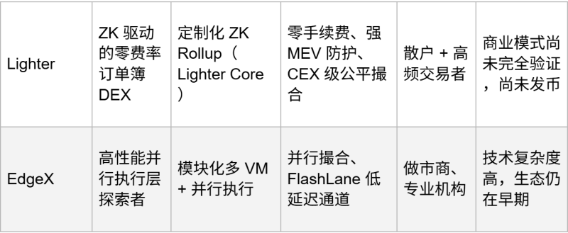 Hyperliquid憑藉自研高性能L1、全鏈訂單簿、資產發行閉環與HLP機制,仍是賽道綜合實力最強項目,適合追求深度與效率的專業用戶,但其結構集中帶來系統性風險。 Aster依賴BSC生態紅利,短中期爆發力強,但長期獨立競爭力有限。 Lighter代表技術天花板型路線,公平性和抗MEV能力突出,但商業模式仍在驗證中。 EdgeX偏向底層基礎設施優化,為高頻與專業交易提供效能潛力,但市場接受度與生態建設仍需時間。