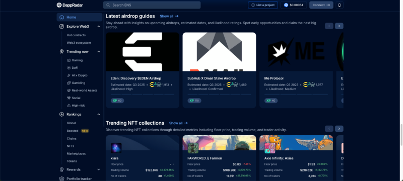 DappRadar 在近兩年可以說是唯一一個涵蓋了Web3 所有長尾領域賽道和項目的平台,但問題是它似乎只專注於尾巴。