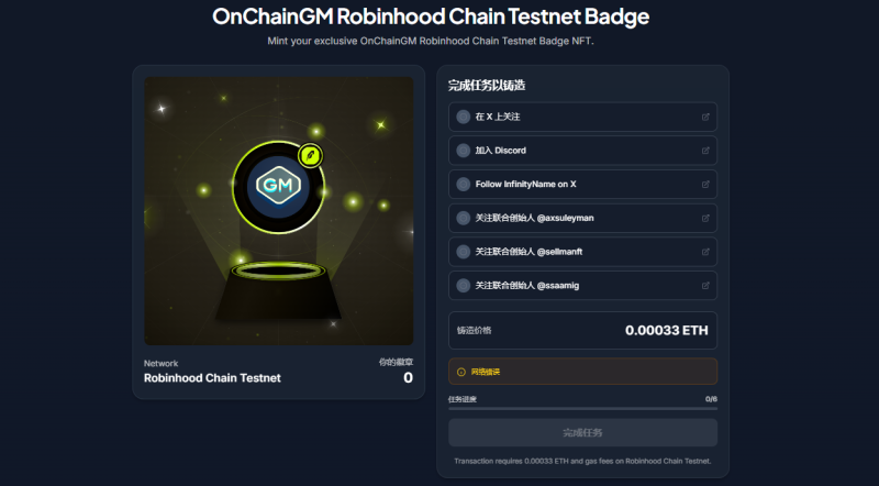 STEP 2. 進行測試網徽章(連結:https://onchaingm.com/badge-robinhood)。