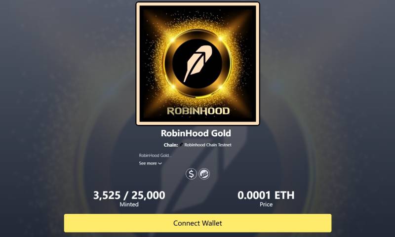 STEP 3. 一些平台如 NFTs2Me 上線 Robinhood 測試網 NFT,可豐富 Robinhood 測試網互動數據,但鑄造 NFT 需支付少量 ETH,需考慮成本(連結:https://bold-robinhood-gold.testnet.nfts2.me/ 和 https://robinhood-penta.testnet.nfts2.me/)。