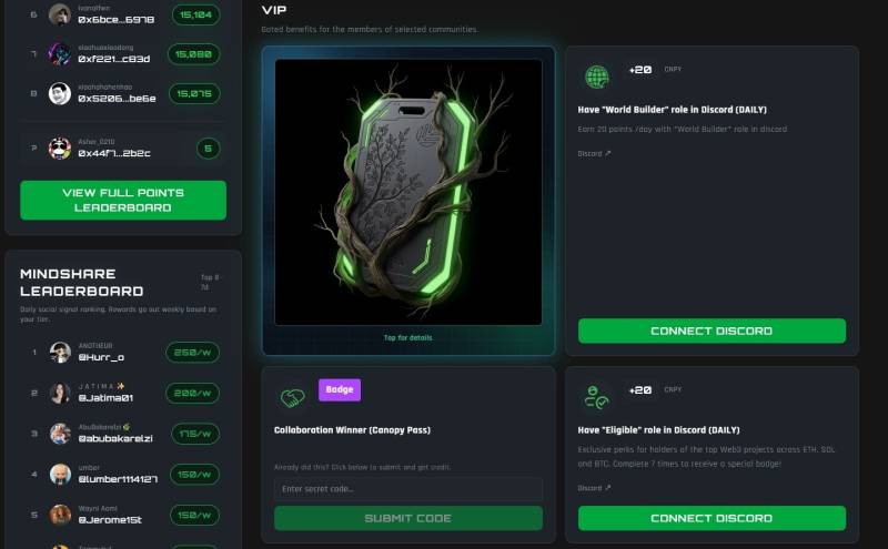 STEP 1. 進入活動介面(連結:https://rewards.canopynetwork.org/),並連接錢包、個人 X 帳號。
