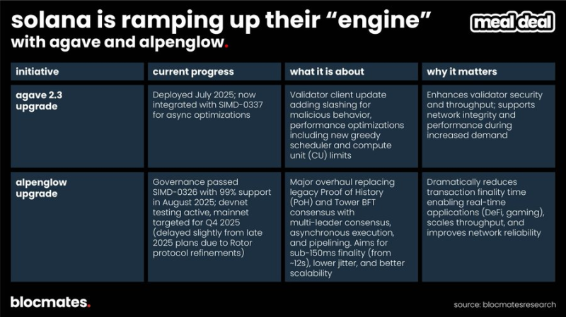 Alpenglow:低於150ms 的最終確認速度,讓零售用戶可以在鏈上使用高頻DeFi、遊戲或微支付類應用,其性能已逼近幣安100ms 與Aptos 200ms 的水準。