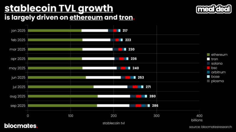 Tempo、Plasma、Stable、Arc 等穩定幣鏈持續威脅Ethereum 和Tron 的穩定幣主導地位。