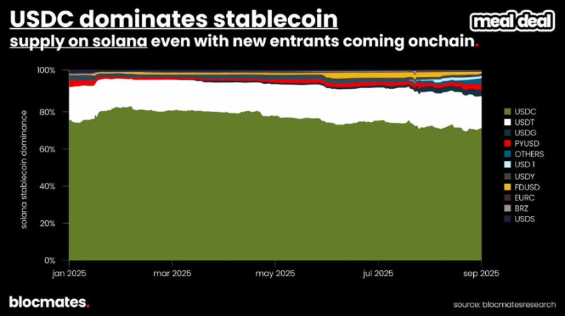 「實驗性」將成為本報告的核心主題之一,而這種精神同樣體現在穩定幣生態中:新的項目正在逐步侵蝕USDC 的主導地位,為Solana 穩定幣格局帶來更多競爭。