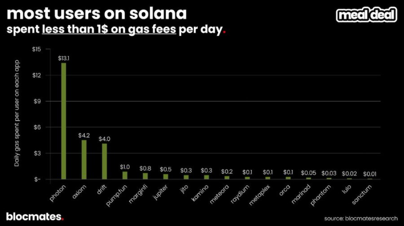 雖然Solana 一直以「快而便宜」著稱,但這並不意味著沒有例外。例如一些高頻深度用戶在@tradewithPhoton或@AxiomExchange等交易平台上的日均手續費支出要遠超預期。
