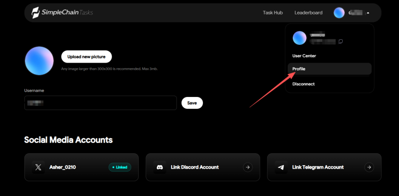 STEP 1. 進入官網(連結:https://task.simplechain.com/),透過錢包完成個人帳號註冊。