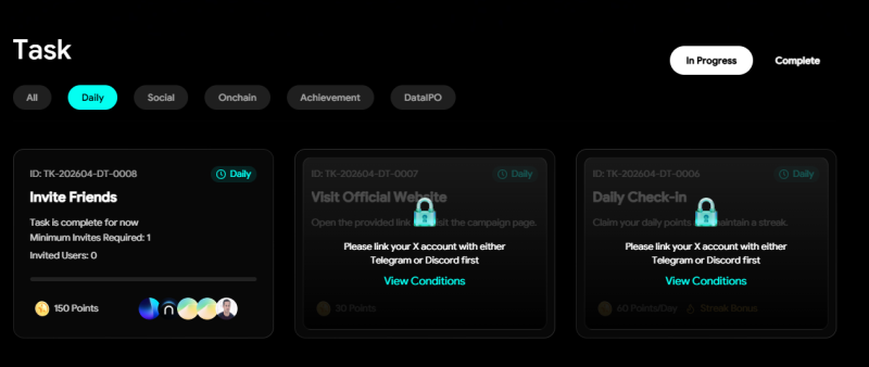 STEP 3. 完成社群任務,包括 X、Telegram、Discord 任務。