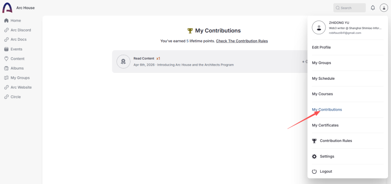 STEP 6. 點選「My Contributions」查看已獲積分情況。